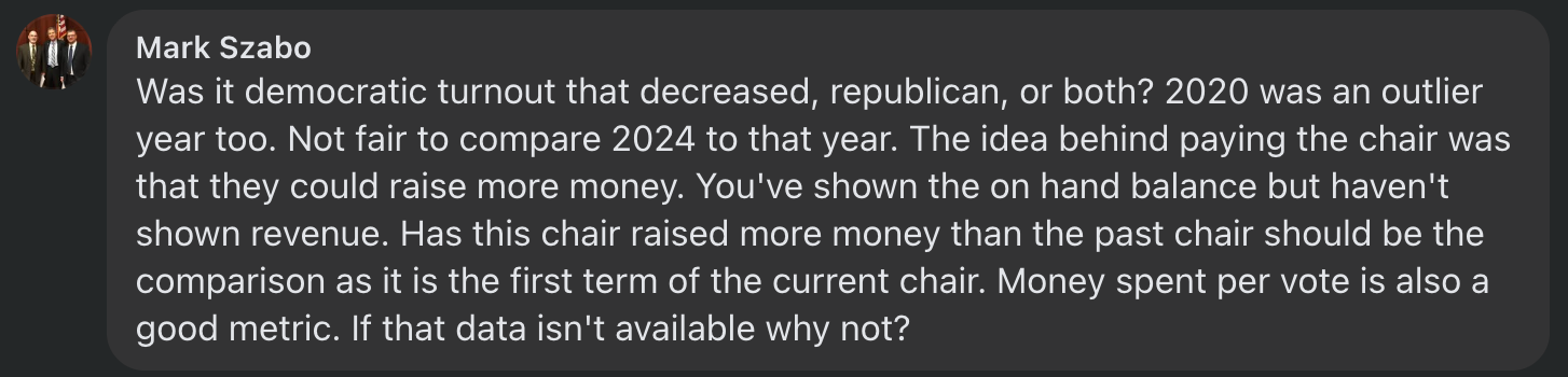 The party needs to fundraise on its own. It needs a consistent, repeatable revenue model. And based on the numbers, it is obvious that the financial situation is not improving year over year.